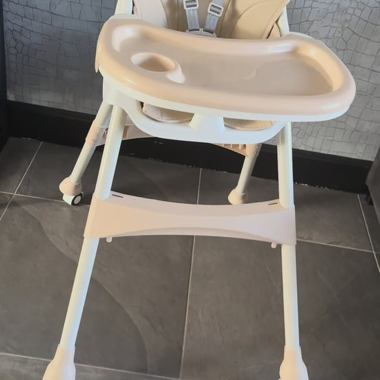 4 functies in één: Gebruik als hoge eetstoel, lage stoel, schommelstoel en speelstoel op wieltjes – geen extra producten nodig.
